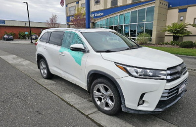 **NOTE: Registration expires 10/26. Front passenger window broken, dents to the door, and bald tires**