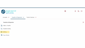 - From the Menu, under Transfers & Payments, click on Bill Pay.